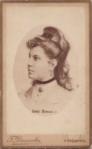Донка Маркова е от Стара Загора, придобила средно образование в Прага в началото на 70-те години на XIX век. След завръщането си в родния град, тя е назначена за учителка в местното девическо училище. В навечерието на Старозагорското въстание (септември 1875) тя ушива знамето на революционната чета, което е съхранено до наши дни и може да бъде видяно в експозицията на Старозагорския музей. За съжаление, Донка Маркова загива в пожарищата на Стара Загора след битката за града на 19 (31) юли 1877 г. Настоящата снимка е оригинал, съхранен във фонда на Националния музей на образованието в Габрово. Тя пази образа на Донка Маркова, нарисуван от нейния роднина - художника Антон Митов. Изображението е ценно с надписа на гърба на фотографията, оставен от ръката на учителя Борис Митов - брат на Антон Митов и родственик на Донка Маркова; която, освен голяма родолюбка, е и очарователна млада дама.